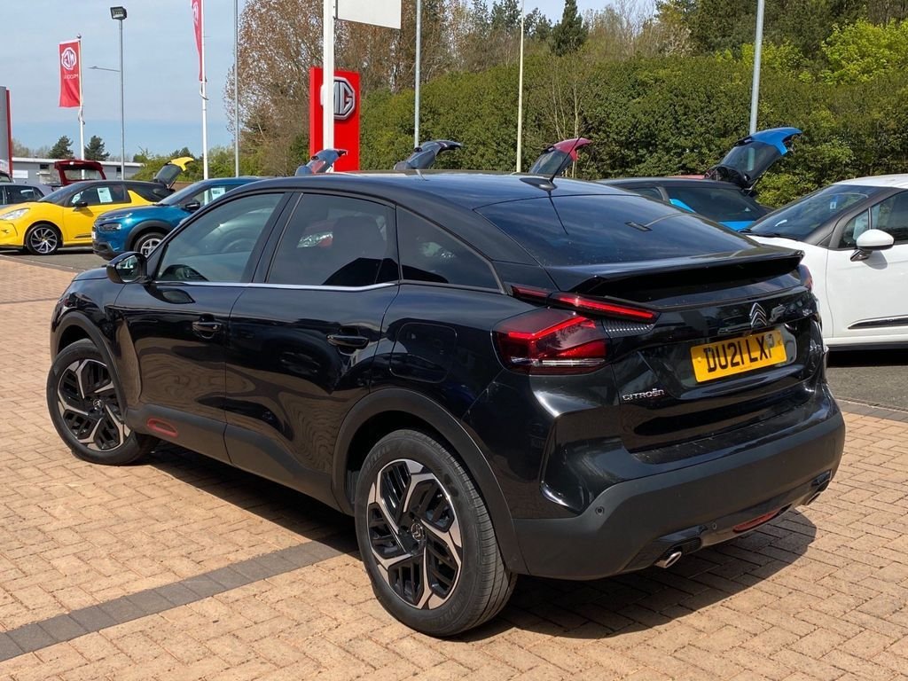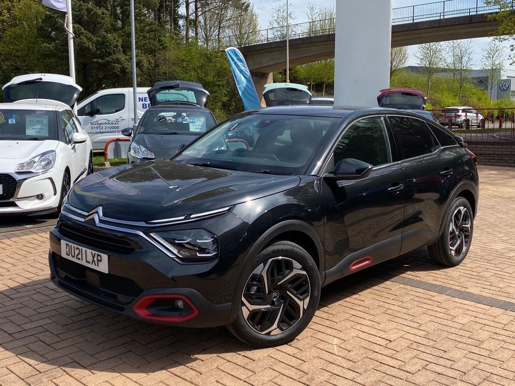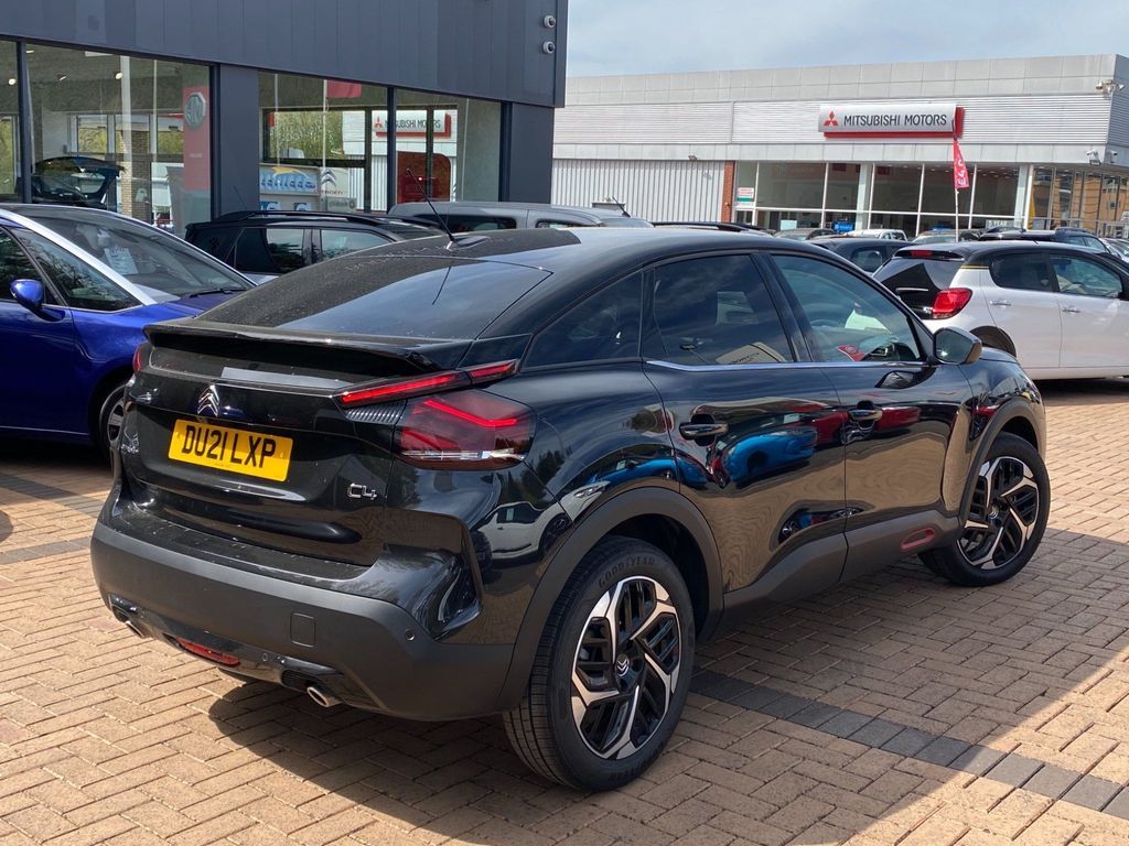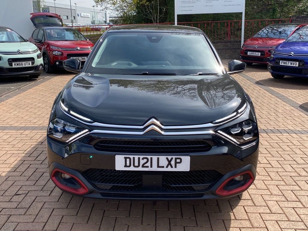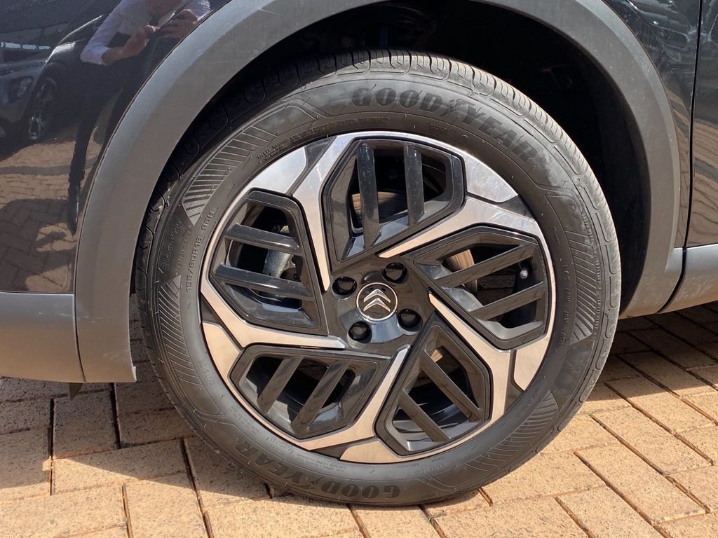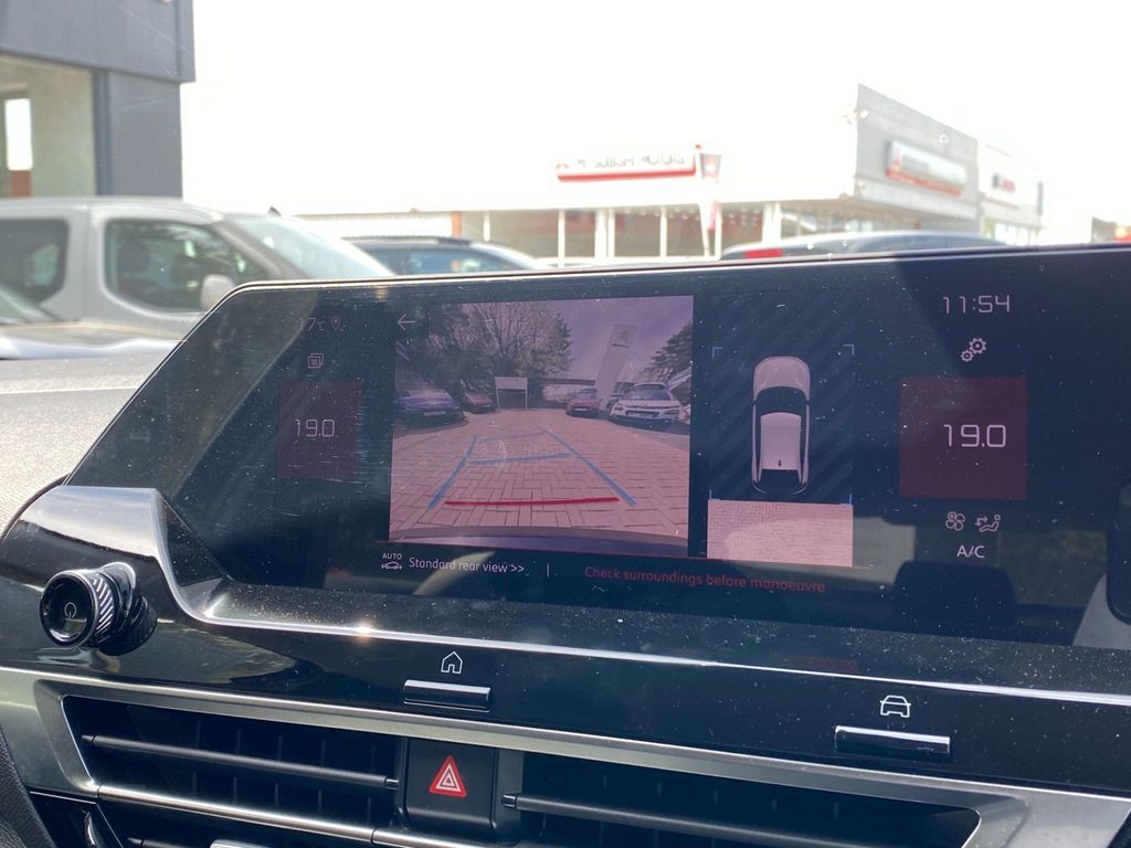 10" high resolution touchscreen user interface, controlling media, connectivity and vehicle settings, 12V power outlet, 1x USB Type-C socket charging & data connection and 1x USB Type-A socket in 1st row and 1x USB Type-A socket charging in 2nd row, 18" diamond-cut Aeroblade alloy wheels with anti-theft locking wheel nuts, 3 rear headrests, 3x3 point rear seatbelts, 5.5 inch backlit full TFT driver's instrument cluster, 6 speakers, ABS, Anti-theft alarm (volumetric protection), Apple car play and Android auto, Automatic headlights, Auxiliary input socket, Bluetooth telephone and audio streaming, Body coloured bumpers, Body coloured door handles, Boot light, Chevrons cloth and leather effect textile seat upholstery, Citroen connect box emergency and assistance system, Citroen connect nav with speed cam and danger zones alert, Cruise control + speed limiter, DAB Digital radio, Dashboard tray in front cabin, Driver and front passenger airbags, Driver and passenger sunvisors with illuminated vanity mirrors, Driver's head-up display, Dual zone automatic air conditioning, Electric parking brake, Electrically heated, folding and adjustable external rear view mirrors with courtesy lighting, Electrochrome interior rear-view mirror with automatic day-night switching, Electronic Power Steering (EPS), ESP, Front and rear electric windows, Front and rear LED interior lighting, Front head restraints, Front seatbelt pretensioners, Gloss black rear skirt, Grained leather steering wheel with two command blocks, Height adjustable driver's seat with adjustable lumbar support, Height adjustable front passenger seat, Height and reach adjustable steering wheel, High level acoustic insulation pack - C4, Hill start assist, Immobiliser, In-crash braking, LED daytime running lights in V signature, LED front fog lamps with static cornering function, LED front headlamps, Manual child lock in second row, Manual deactivation of front passenger airbag, Map pockets in rear of front seats, Obsidian black painted external rear view mirrors, Post collision safety brake, Puncture repair kit with compressor, Rain sensing automatic front windscreen wipers, Raised centre console with two cup holders, Rear parking sensors, Remote locking with deadlocks, Row 1 and 2 curtain airbags, Row 1 side thorax airbags, Seatbelt unfastened on the move warning, Split folding rear seats, Suspension with progressive hydraulic cushions - double hydraulic stops on front suspension and single on rear suspension, Two position boot floor, Two remote keys, Tyre underinflation detection, Visio Park 1 (rear parking camera), Voice commands, Welcome and goodbye lighting