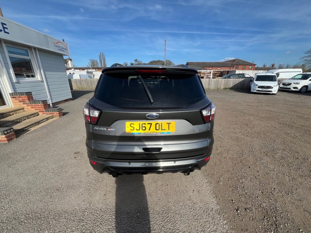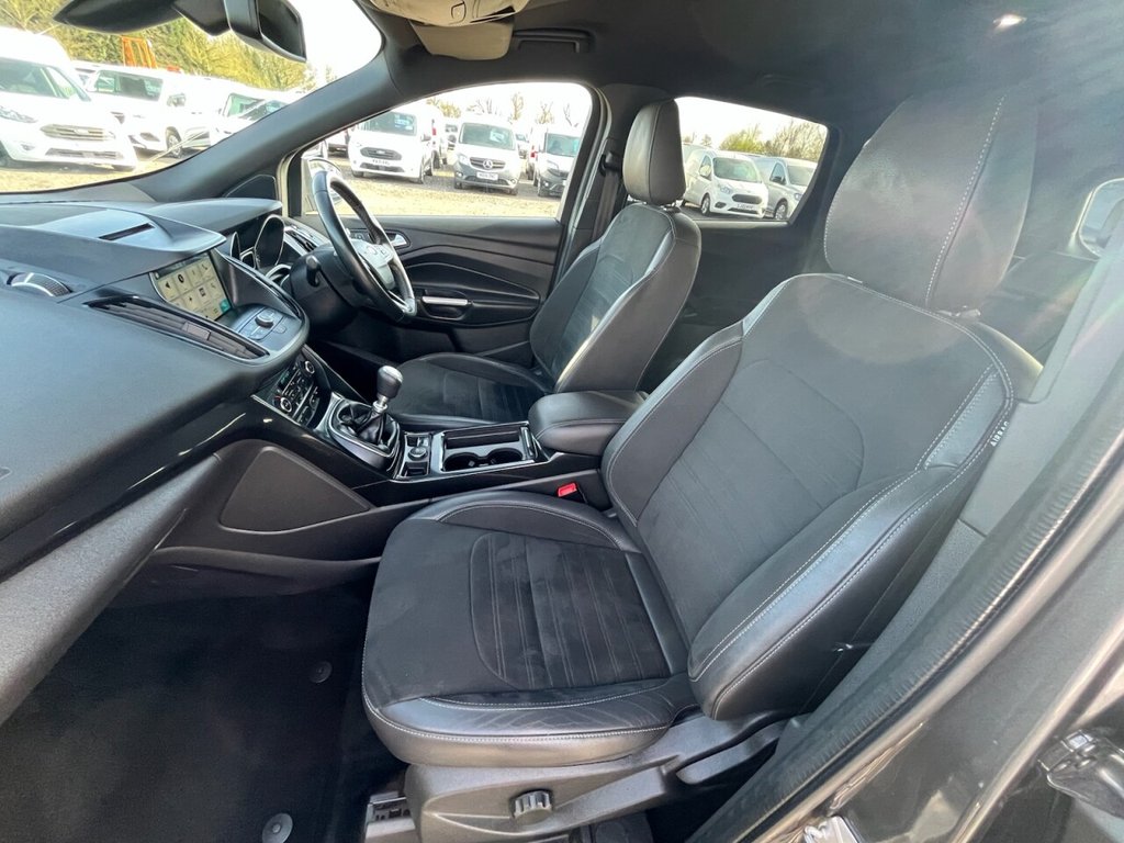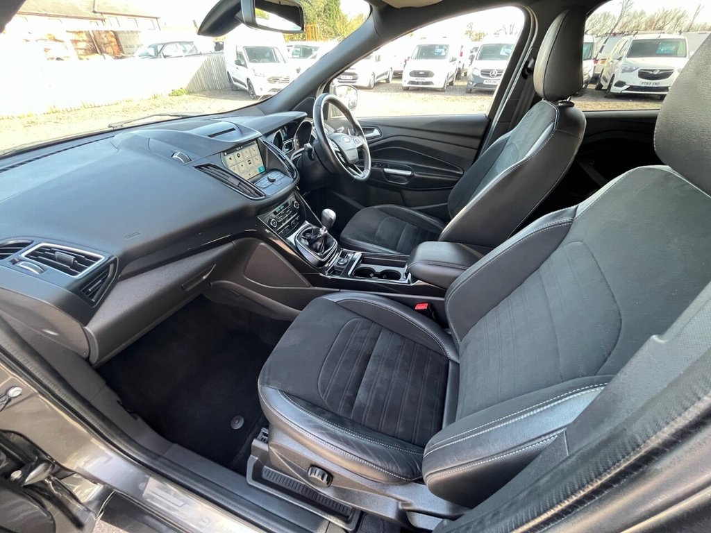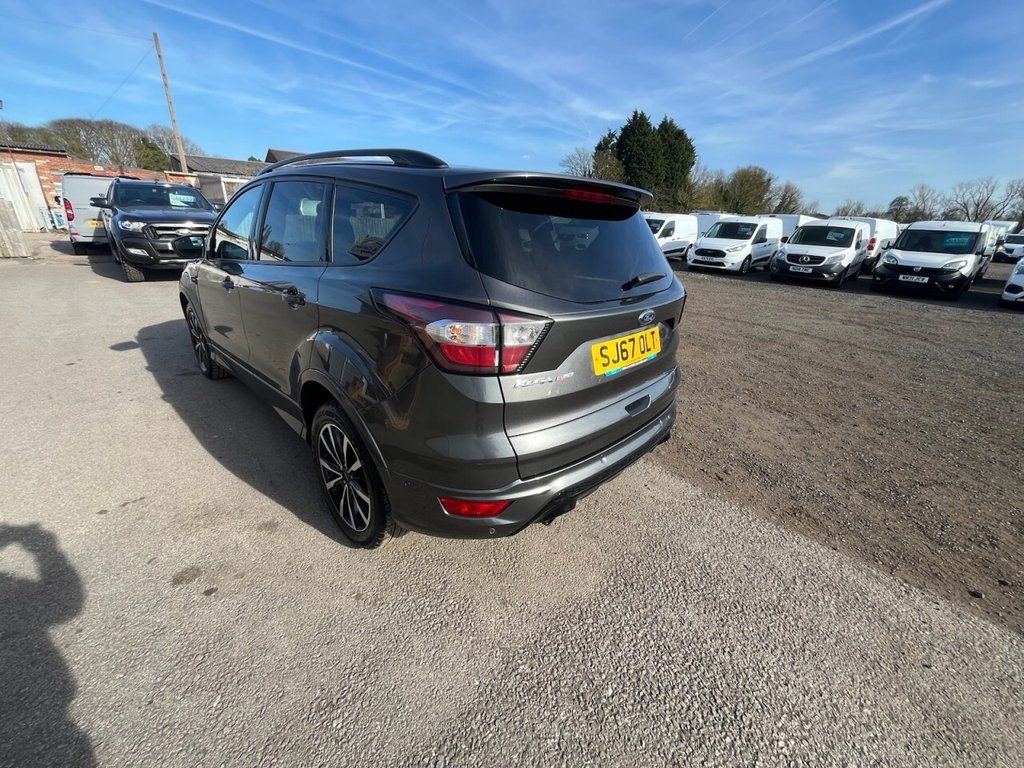 This is a 2017 Ford Kuga TDCi ST-Line, a car with a 2.0L diesel engine and four-wheel drive. The vehicle boasts a full service history and a clear vehicle history check. The ST-Line trim includes DEATC - Dual-Zone Electronic Automatic Temperature Control, which incorporates climate control for optimal comfort. Manoeuvring is made easy with Enhanced Active Park Assist, including front and rear parking sensors. The Ford DAB Navigation System with Ford SYNC3, including Bluetooth, ensures you stay connected and on the right track. Automatic halogen headlights with LED daytime running lights provide enhanced visibility, and include automatic activation. This Kuga stands out with its impressive fuel economy of 54 mpg, meaning fewer trips to the pump and more money in your pocket compared to similar vehicles. It also benefits from low CO2 emissions, making it a more environmentally conscious choice. The car is Euro 6 compliant and has an MOT valid until March 2026, offering peace of mind for miles to come.