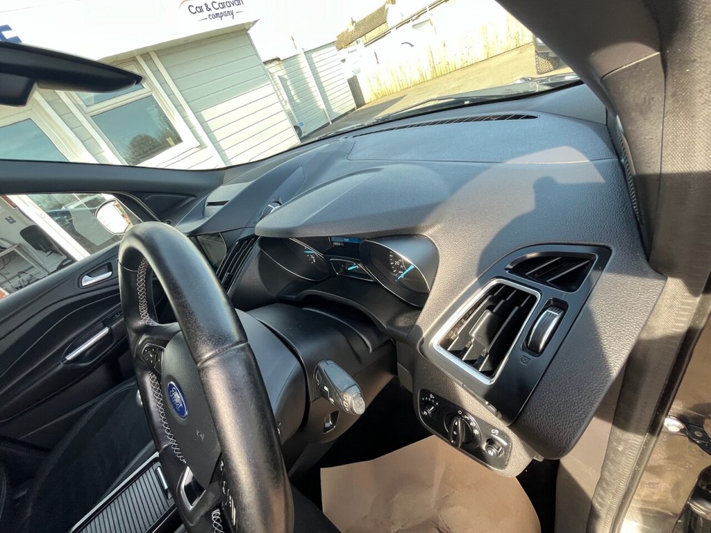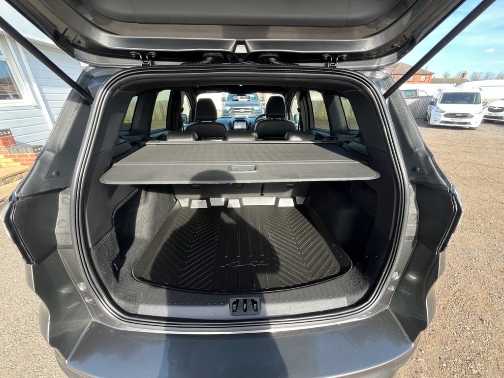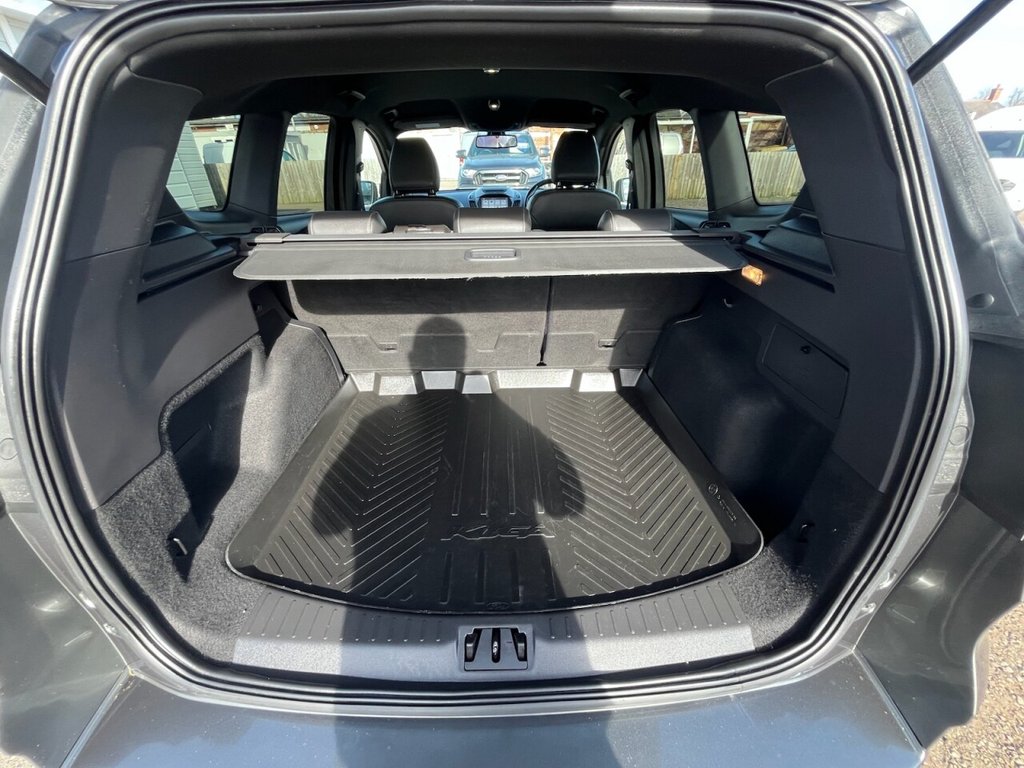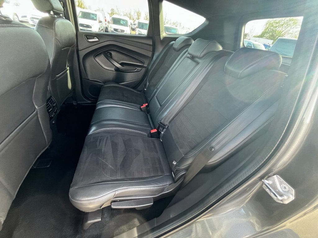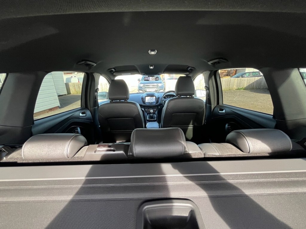 This is a 2017 Ford Kuga TDCi ST-Line, a car with a 2.0L diesel engine and four-wheel drive. The vehicle boasts a full service history and a clear vehicle history check. The ST-Line trim includes DEATC - Dual-Zone Electronic Automatic Temperature Control, which incorporates climate control for optimal comfort. Manoeuvring is made easy with Enhanced Active Park Assist, including front and rear parking sensors. The Ford DAB Navigation System with Ford SYNC3, including Bluetooth, ensures you stay connected and on the right track. Automatic halogen headlights with LED daytime running lights provide enhanced visibility, and include automatic activation. This Kuga stands out with its impressive fuel economy of 54 mpg, meaning fewer trips to the pump and more money in your pocket compared to similar vehicles. It also benefits from low CO2 emissions, making it a more environmentally conscious choice. The car is Euro 6 compliant and has an MOT valid until March 2026, offering peace of mind for miles to come.