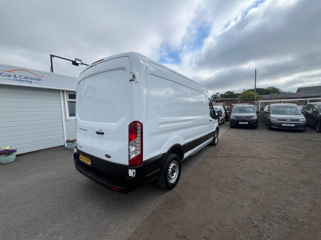 With only one owner from new, this 2022 Ford Transit 350 Leader is ready to get to work. This van is the L3 H2 derivative, powered by a 2.0L diesel engine and is Euro 6 compliant. The vehicle's history is clear, and it has a valid MOT until May 2026. For ease of parking, it comes equipped with parking sensors, including front and rear parking assistance. The interior features a 4.2in monochrome TFT non-touch screen with the New SYNC 4 System, including Bluetooth connectivity. It was last serviced on 15th May 2025, with the mileage recorded at 71047 miles. The 350 Leader variant of the Ford Transit offers a substantial cargo volume of 10800 litres. This large capacity means it can accommodate bigger loads than similar vehicles.