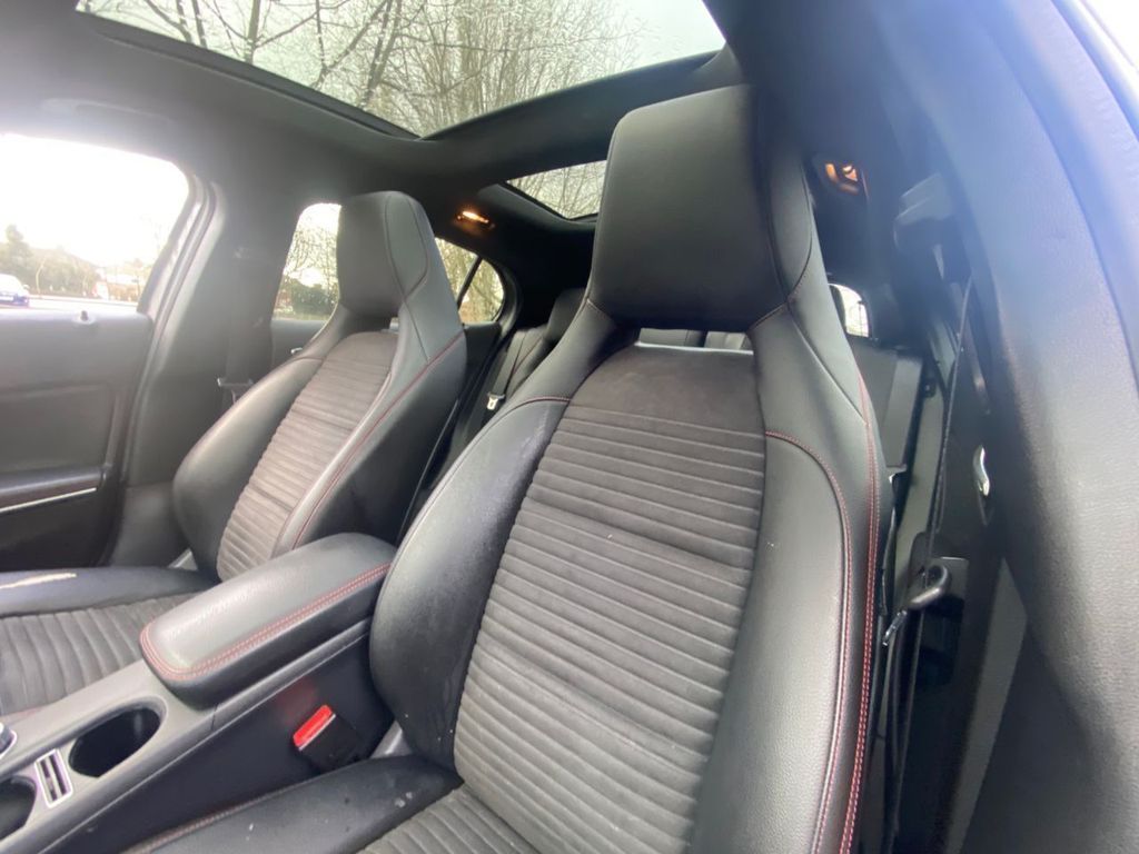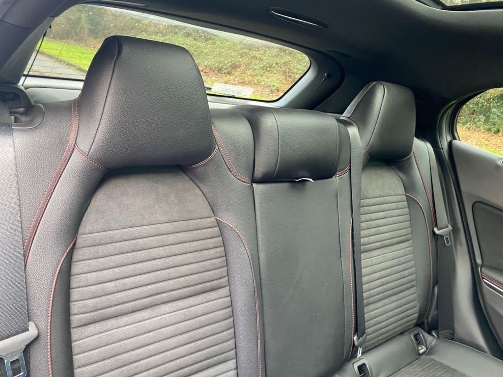 1/3 to 2/3 split folding rear seats, 12 colour Ambient lighting, 12V power socket in centre console, 12V socket in luggage compartment, 180 degree reversing camera with parking guidelines, 3 rear three point seatbelts, 3 spoke and 12 button flattened bottom multifunction steering wheel trimmed in nappa leather with perforated leather grip area, 4 analogue dials and needles suspended in six o'clock position, 8" media display touchpad, Active bonnet pedestrain safety measure which detects an impact and raises bonnet by 65mm, Active brake assist, Adaptive brake assist with hold function and hill start assist, Adaptive brake lights, Air conditioning - Two zone thermotronic luxury automatic climate control with display, Air vents with chrome surround and cruciform nozzles, Ambient lighting in front headrests, AMG brushed stainless steel sports pedals with rubber studs, AMG floor mats with AMG lettering and stiched edging, Anti-lock braking system (ABS), Anti-theft alarm system/interior protection with tow-away protection and interior monitoring systems, Artico man-made leather/Microfibre Dinamica upholstery with red contrast stitching, Attention assist, Audio 20 radio/single CD/MP3, 6 speakers, telephone keypad, twin radio tuner, Bluetooth, 2 USB ports, SD card slot and Garmin Map pilot nav system, Auto Mercedes-Benz child seat recognition sensor, Automatic headlamp activation, Black roof lining, Black seat belts, Body coloured bumper with front and rear apron trim in matt titanium grey, Body coloured door handles with chrome inserts, Childproof locks manually operated for rear doors and electrically operated for rear power windows, Chrome beltline strips, Chrome surround electric key, Comfort seat pack - GLA Class, Crash responsive emergency lighting, Drivers knee airbag, Dual stage driver and front passenger airbags, DYNAMIC SELECT with a choice of driving modes (ECO, Comfort, Sport and Individual), Easy-pack tailgate - Powered opening/closing automatically, ECO start/stop function, Electric front windows, Electrically adjustable and heated door mirrors, Electrically adjustable front memory seats with four way lumbar support, Electronic parking brake, Electronic stability programme with acceleration skid control, Fluid level warning indicator for fuel, oil, coolant and washer fluid, Front and rear seatbelt reminder, Front centre armrest with stowage, Front door sills with Mercedes-Benz lettering, Front fog lights, Front footwell lights, Front passenger seat occupancy sensor, Front seat cushion length adjustment, Front side airbags, Full LED tail lamps, Gearshift paddles, Heat insulating dark tinted privacy glass from the B-pillar backwards, Heated front seats, Heated glass rear windscreen + timer control, Illuminated door sills, Illuminated glove compartment stowage, Instrument cluster, Interior door handle illumination, Keyless go comfort pack - GLA Class, LED High performance headlamps with adaptive highbeam assist, LED third brake light, Light aluminium with longitudinal grain interior trim, Luggage compartment cover, Manually height and reach adjustable steering column, Media interface, Mercedes me connect including emergency call system, accident recovery, breakdown management and maintenance, Mirror pack - GLA Class, Multi function trip computer, Off road comfort suspension, Outside temperature gauge, Panoramic sliding sunroof, Parking pilot with front and rear parking sensor and steering assist, Rain sensor windscreen wipers with two sensitivity stages, Rear footwell lights, Rear Reading Lamps, Rear windscreen intermittent wiper with automatic activation when reversing, Remote central locking, Roof mounted radio aerial, Run flat tyres, Service indicator (ASSYST), Smartphone integration with Apple CarPlay and Android auto, Sports seats with integrated head restraints, Sports speed sensitive direct steer system with servo assistance, Stowage compartment beneath load compartment floor, Stowage compartment lighting, Sunvisors with illuminated vanity mirrors, Twin front cup holders, Two outer rear seat isofix and top tether child seat fixing points, Two pipe visible exhaust system with chrome tailpipe tips, Tyre pressure monitoring system, Warning triangle and first aid kit, White courtesy and red warning lights in front doors and boot lid, Window airbags