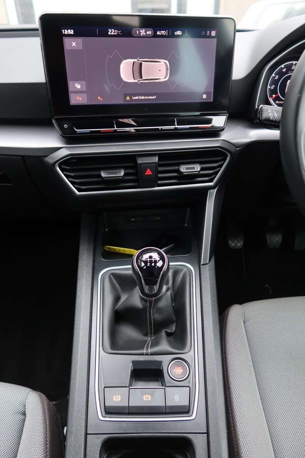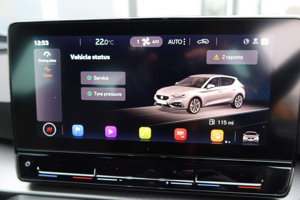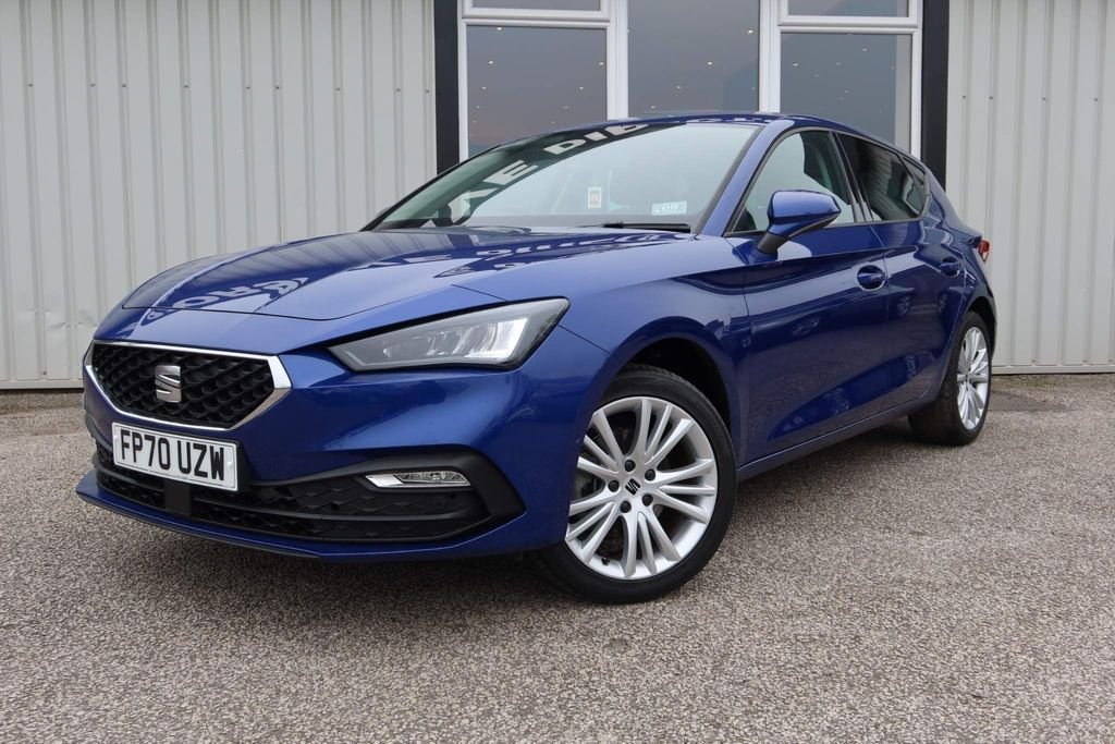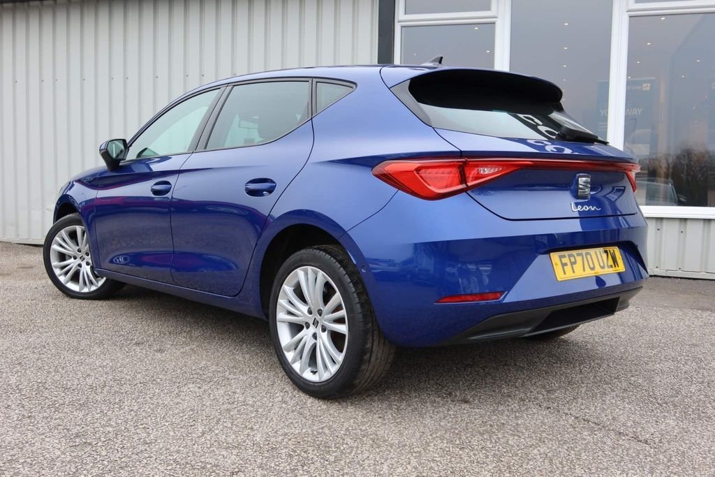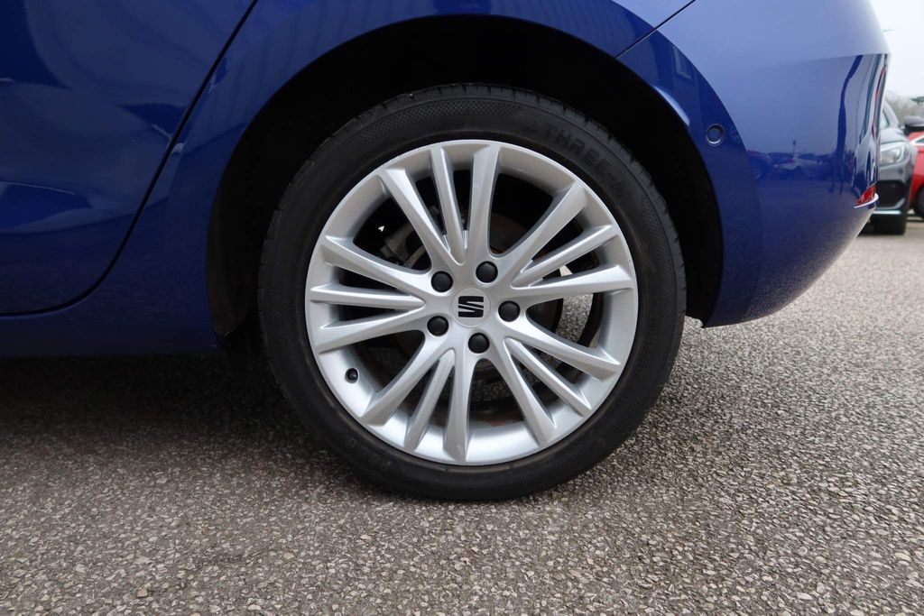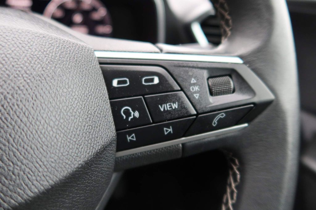 12v power point in centre console, 17" Dynamic tri-spoke alloy wheels with 91W tyres, 3 point seatbelts on all rear seats, 60/40 split rear bench seat, ABS, Air conditioning, Anti theft alarm system with interior monitoring in cab, backup horn and towing protection, Auxiliary input socket, Body coloured bumpers, Body coloured door handles, Body coloured exterior mirrors with integrated LED indicators, Brake control system - ESC and brake booster, Child proof door locks, Chrome interior detailing, Cloth upholstery, Cruise control with speed limiter, Dark tinted rear windows, Digital cockpit, Driver and front passenger airbags with front passenger airbag de-activation, front side and curtain airbags, Driver seat lumbar adjustment, Driver/passenger manual seat height adjustment, Dust/pollen filter, Electric front/rear windows, Electrically adjustable and heated door mirrors, Electronic parking brake, Extended safety system - seat belt tensioner, window closure and hazard lights, Folding boot cover, Front and rear height adjustable headrests, Front and rear reading lights X 4, Front assist with forward collision warning braking reaction to vehicles, pedestrians and cyclists, Front seatback storage pockets, Full link smartphone integration with Mirror Link, wireless Apple CarPlay and wired Google Android Auto, Height/reach adjust steering wheel, Hill hold control, Interior lighting with LED lighting in sunvisor, glovebox and rear headlining, ISOFIX points in outer rear seats with top tether anchorage points, KESSY Go (Keyless start), Lane keeping system, Leather flat bottomed, perforated steering wheel and leather gearstick, LED front fog lamps with cornering function, LED headlights and LED tail lights, LED rear fog lamp, Lockable tailgate, Locking wheel bolts, Luggage tie-down hooks, Manual dimming rear view mirror, Media system plus with navigation - Leon SE, Park assist (inc front/rear parking sensors), Power assisted speed sensitive electro-mechanical steering, Rear disc brakes, Rear wash/wipe, RPM, trip computer, outside temp gauge, instrument light brightness, low fuel warning light, lights on reminder, gearshift indicator, Seat belt reminder for front and rear seats, Separate daytime running light with automatic headlight control, Service interval indicator, Standard suspension, Start/stop system with regenerative braking, Sunvisors with covered illuminated mirror, Tiredness recognition system, driver alert system, Tool kit, Tyre pressure monitoring system, XDS electronic differential lock and dynamic traction support