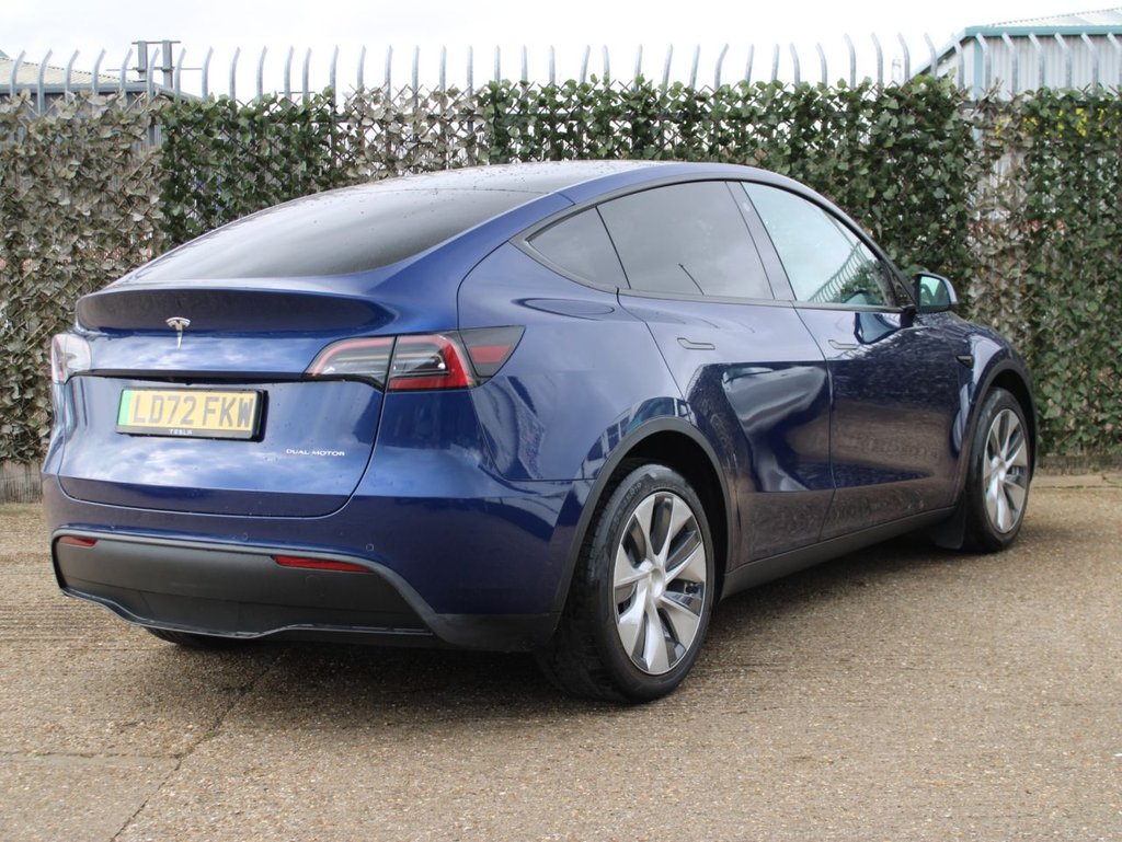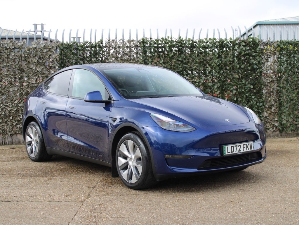 This 2022 Tesla Model Y Long Range presents an exceptional ownership opportunity, having been cherished by just one owner from new. This electric, four wheel drive SUV boasts a substantial 85 kWh battery, offering an impressive maximum range of 331 miles when new. With only 23,915 miles on the clock, it is remarkably low mileage for its age. Charging is convenient, taking approximately 12 hours for a full charge at home using a 7kW charger, while rapid public charging can replenish the battery from empty to 80% in as little as 25 minutes. Furthermore, this Model Y features a large boot space, providing ample room for all your needs. The performance of this Tesla Model Y Long Range is truly noteworthy, with a rapid 0-60mph acceleration time of just 4.8 seconds, highlighting its dynamic capabilities. These key features, including its extensive range and swift acceleration, demonstrate how this particular vehicle excels compared to others in its class. The combination of its advanced electric powertrain, generous interior space, and low mileage makes this Model Y a compelling choice for those seeking a premium electric SUV.