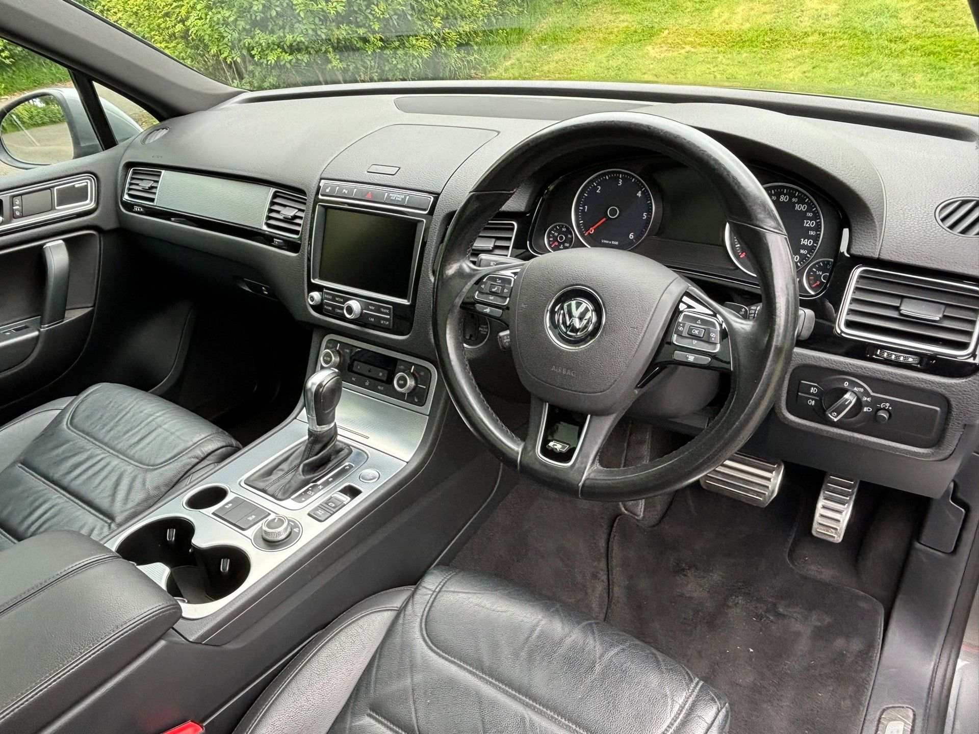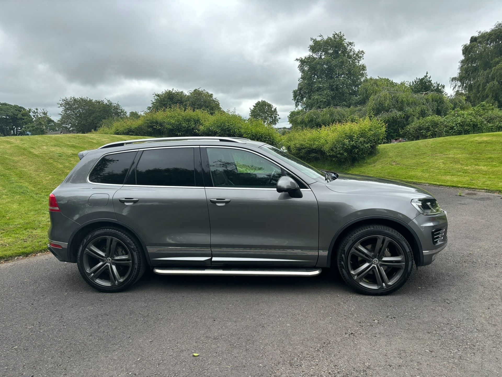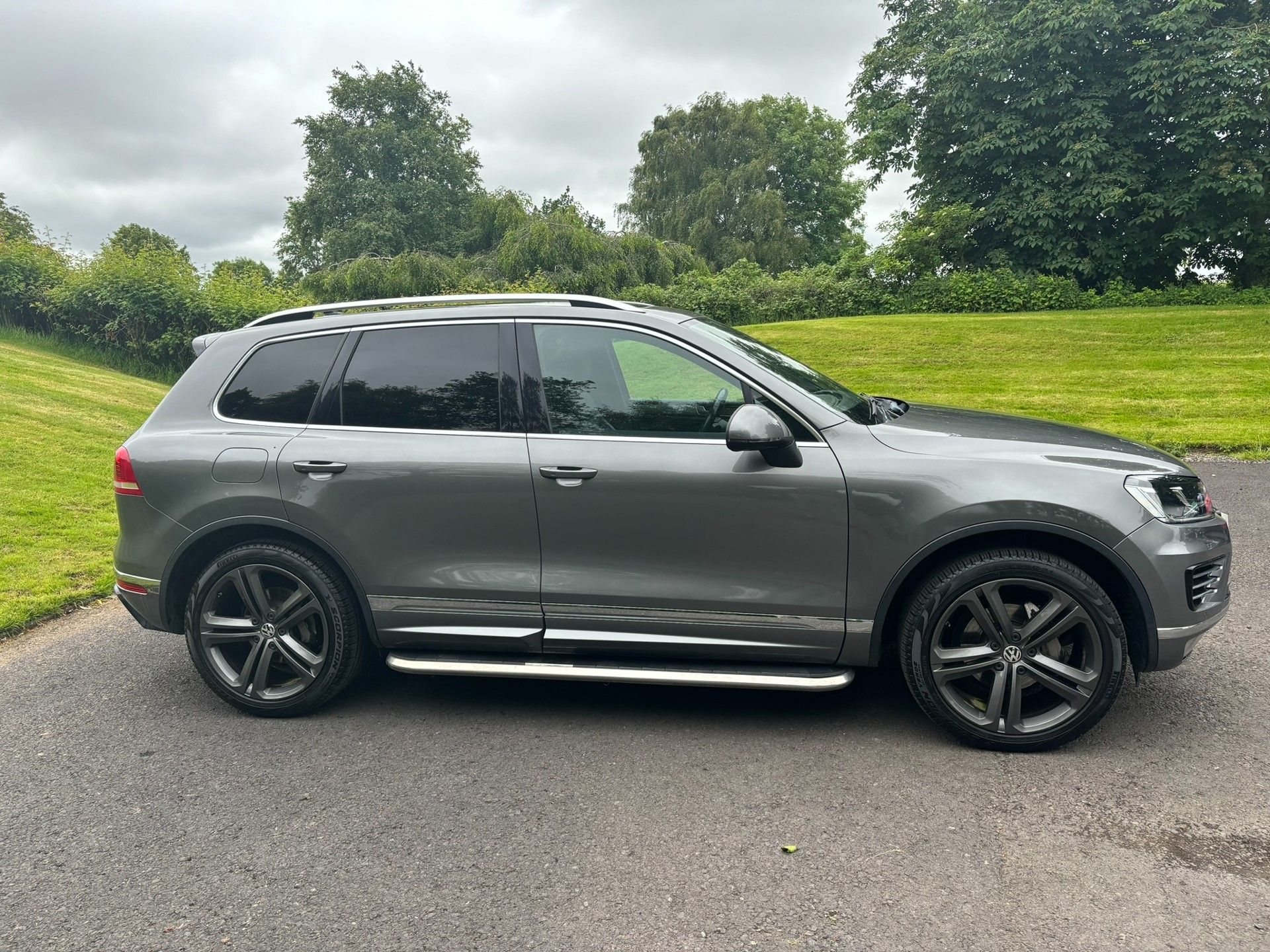 VSL are proud to offer for sale this Canyon Grey Metallic VW Touareg V6 R-Line TDi, with over £6700 of factory options including Adaptive Cruise Control, 21" 'Mallory' Alloy Wheels, Dynaudio Soundpack, Ambient Lighting Pack, Memory Pack, Heat Insulating Rear Tinted Glass 90% Light Absorbing from Pillar B Backwards and Tow bar. Boasting a fantastic spec. including, Full Bluetooth Telephone Preparation, DAB radio, 8in Colour Touch Screen, SAT NAV, Multi-Function Computer, Hill Start & Descent Assist, Heated Front Seats, Panoramic Sunroof - Electric & Sliding Glass, Parking Sensors Front & Rear, Speed Sensitive Power Assisted Steering, Cooled Glovebox, Sports Supension, Heated Steering Wheel, Space Saver Spare Wheel, ISOFIX and more, this is a must see! With a Full Service History, MOT until 26.11.2024, 6 Months Warranty & Breakdown Cover and 2 keys, this car is ready to go. Call 01995 601500 to arrange a test drive today.